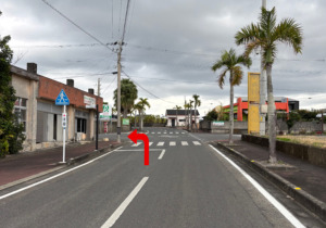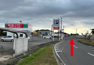 空港を出て、左手にレンタカー店が見える道を、まっすぐ進みます。