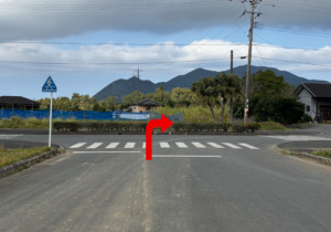 最初の十字路を左に曲がります。