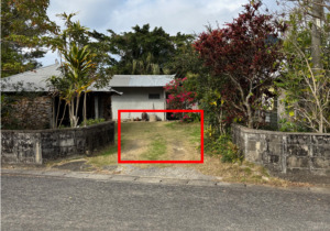 敷地内の赤枠の箇所にお停めください。道路には出ないようご注意ください。