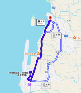 ■ 徳之島空港から宿までのアクセス(約10分)