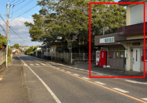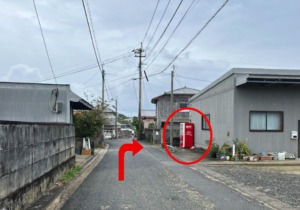右手にある、赤い自動販売機と電柱を通り過ぎてすぐの角を、右に曲がります。