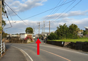 最初の十字路を右に曲がります。