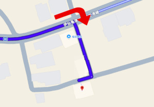 宿に入る直前の右折ポイント(画像内の赤マーク部分)が非常に分かりづらくなっております。通り過ぎやすい場所ですので、事前にご確認ください。